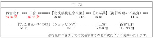 ◆集合場所:8:00 阪急西宮北口駅南側(兵庫県立芸術文化センター西側)